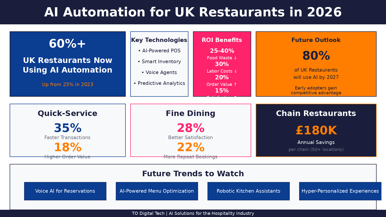 Looking to grow your business with technology that actually works? At TO Digital Tech, we make it simple. Based in Birmingham and London, we create smart digital helpers (AI Agents) that handle your everyday tasks - from writing social media posts to answering customer questions 24/7. Need a website that stands out? We do that too. Our friendly team helps businesses of all sizes, whether you're just starting or ready to grow bigger. We can work with you in person or online, whatever suits you best. Want to see how we can help your business save time and money? Book a free chat with us today.